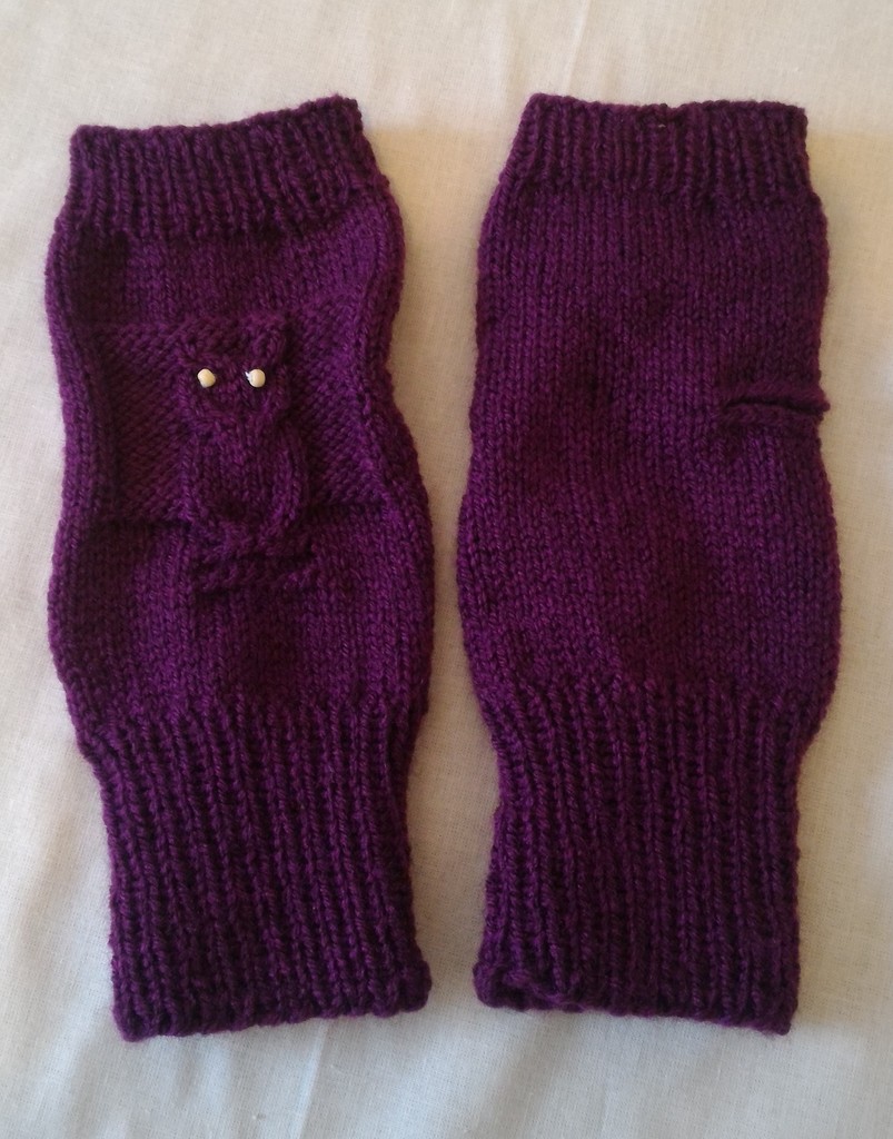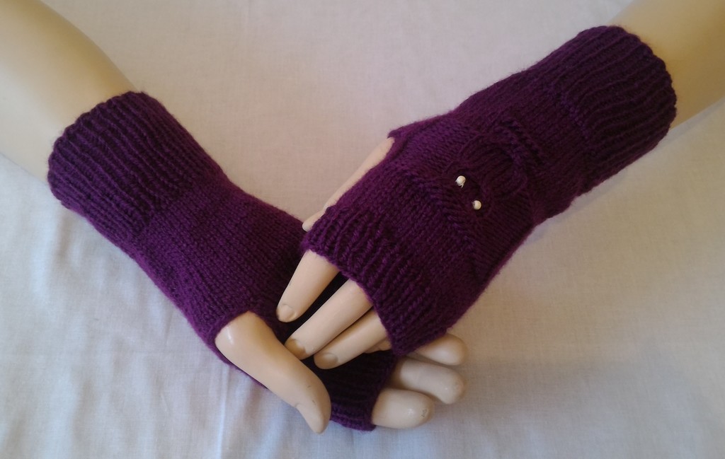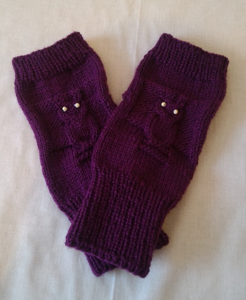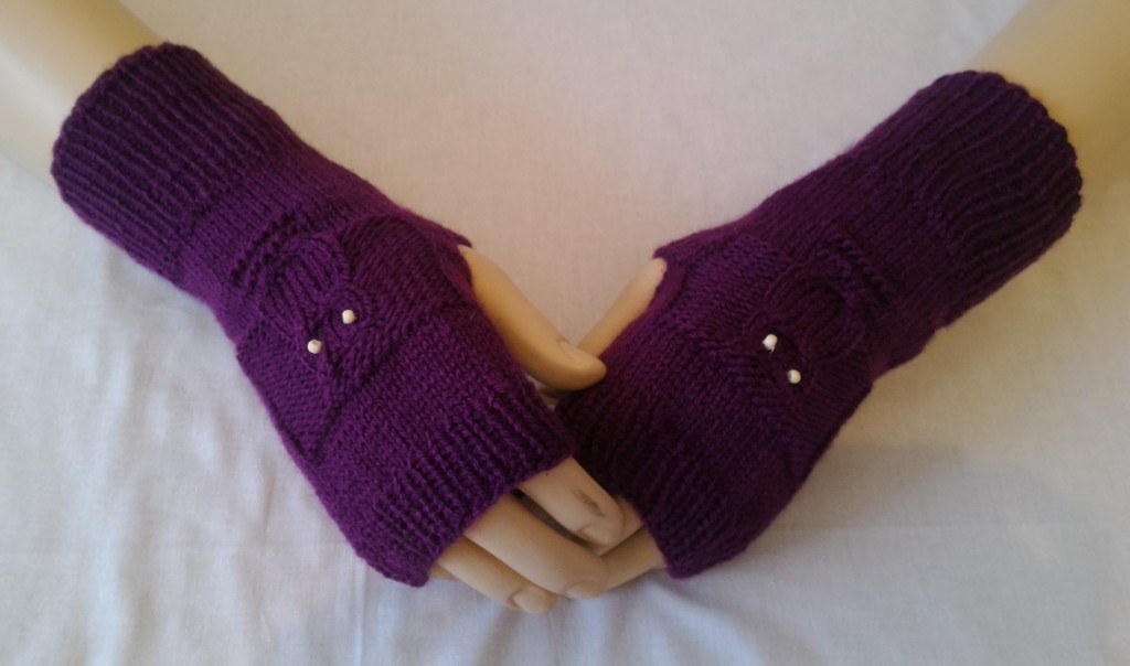 Handstulpen - Lila mit Eule und Perlen - Mädchen / Damen