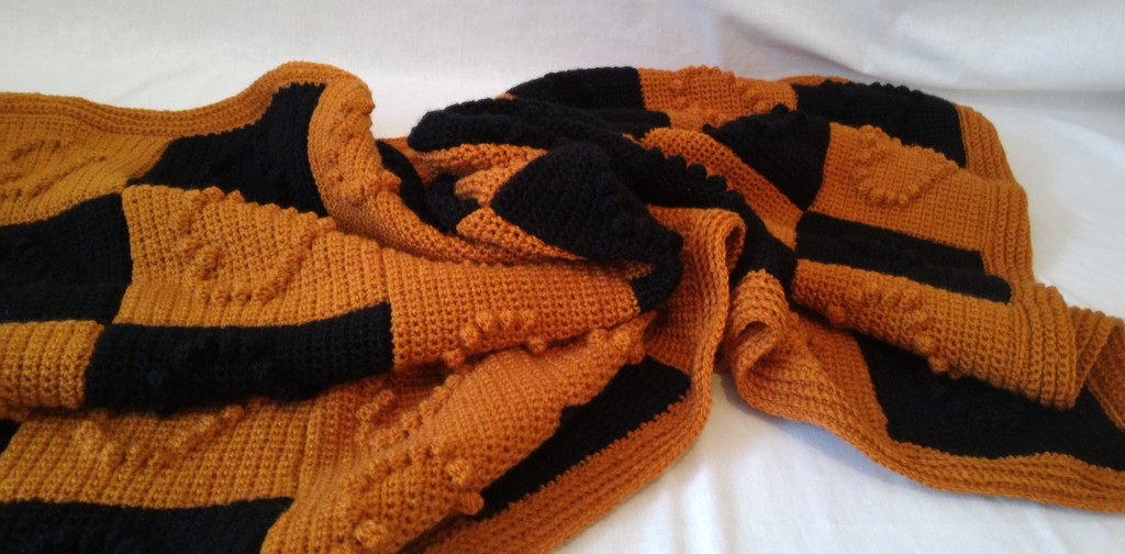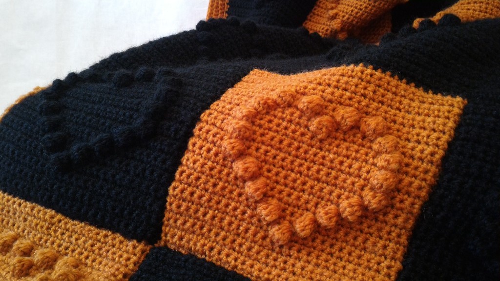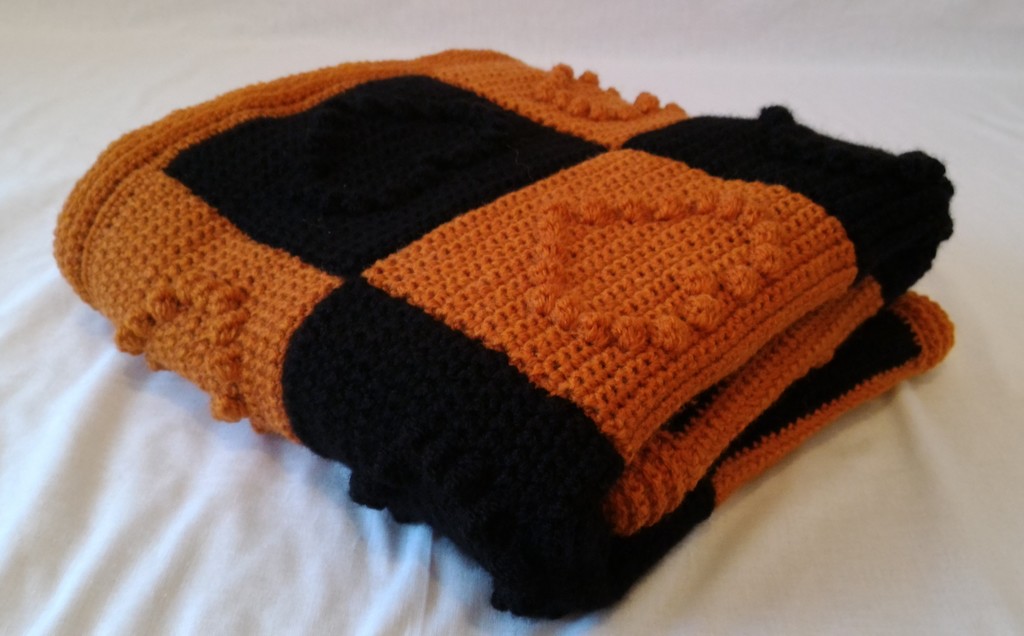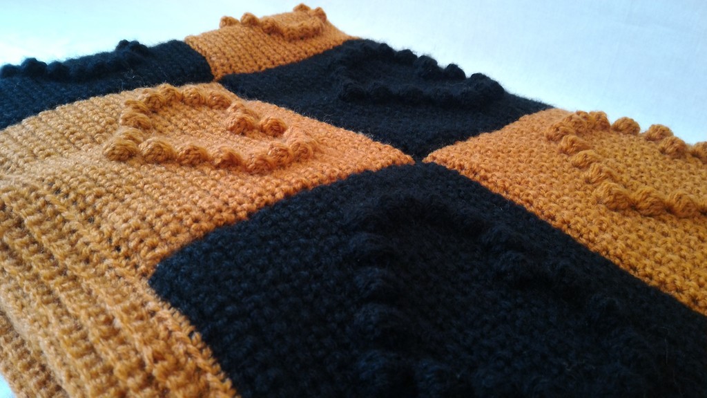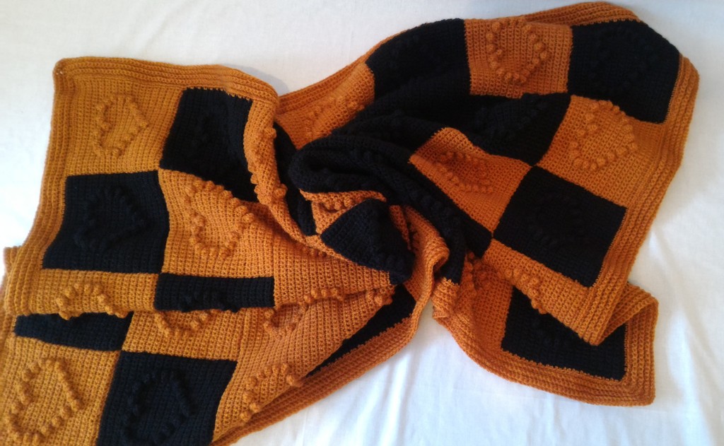 Decke - Schwarz / Braun mit Karomuster und Herzen - Maße ca. 130 x 85 cm