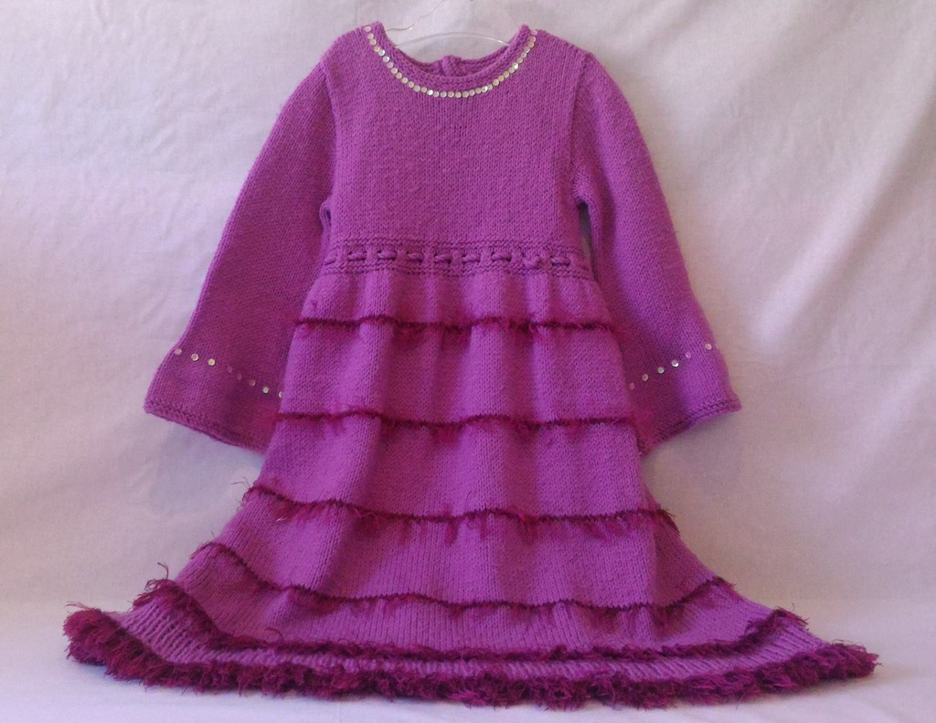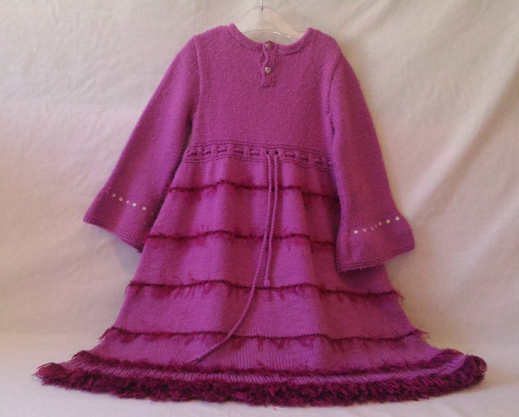 Kleid - Lila mit Knöpfe, Kordel, Fransen und Pailletten - Größe 122 - Mädchen
