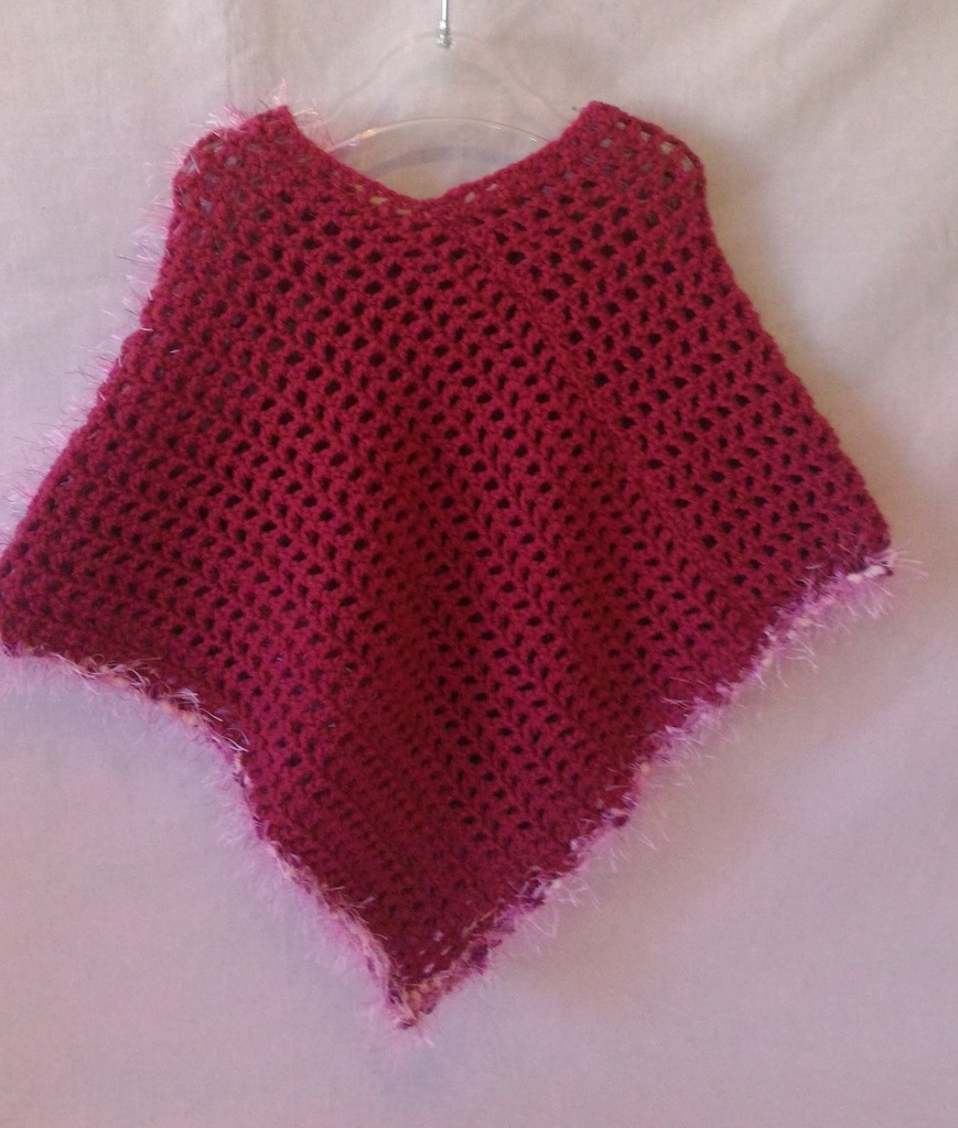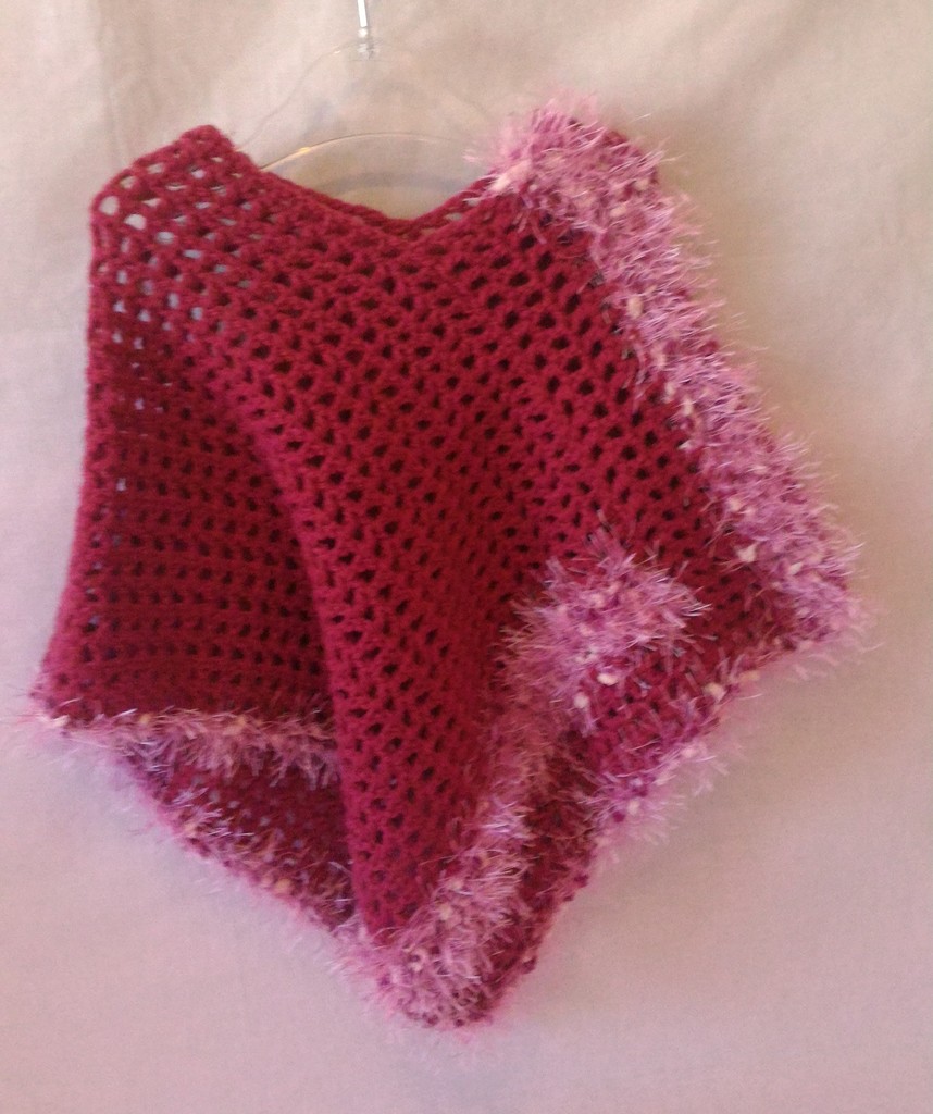 Poncho - Pink / Lila mit Fransen - Größe 98 / 104 - Mädchen