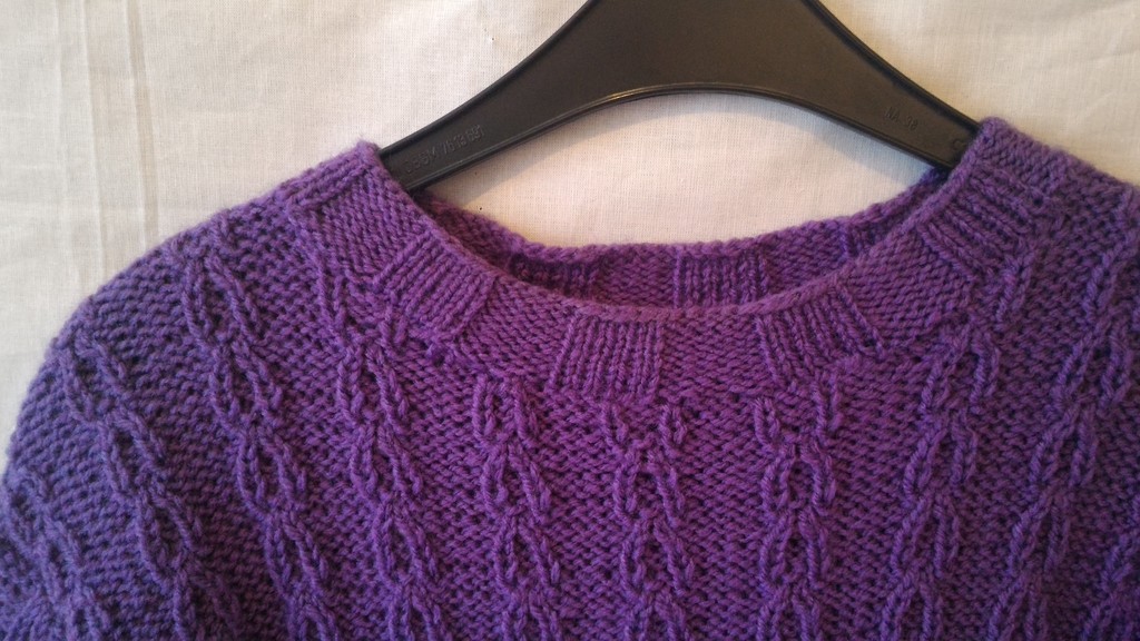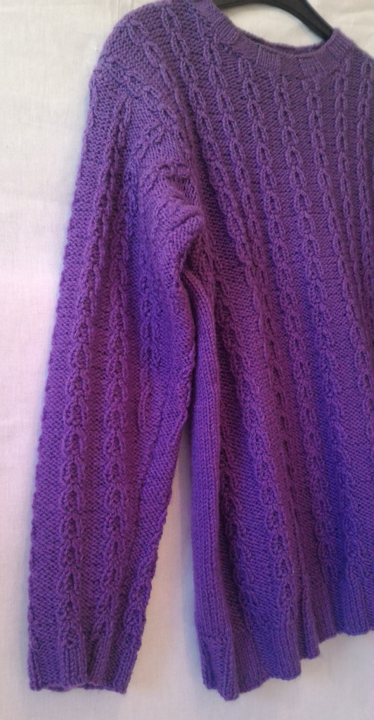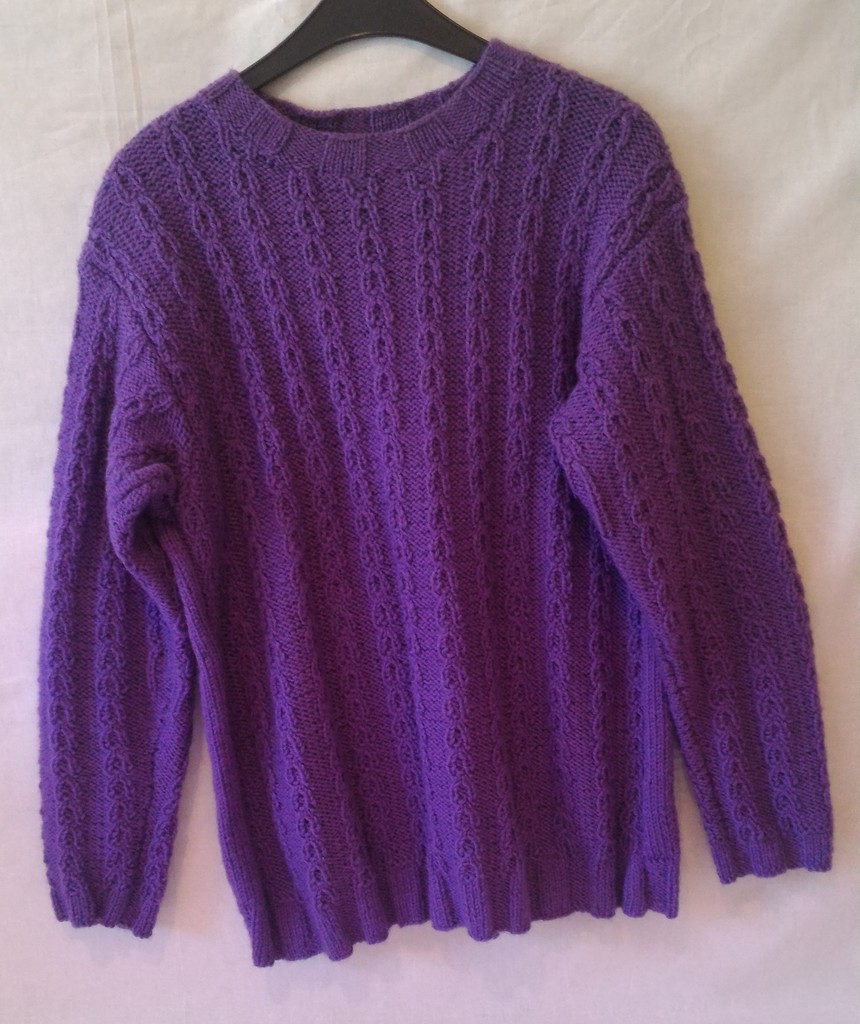 Pullover - Lila mit Zopfmuster und Rundkragen - Größe 36 - Mädchen / Damen