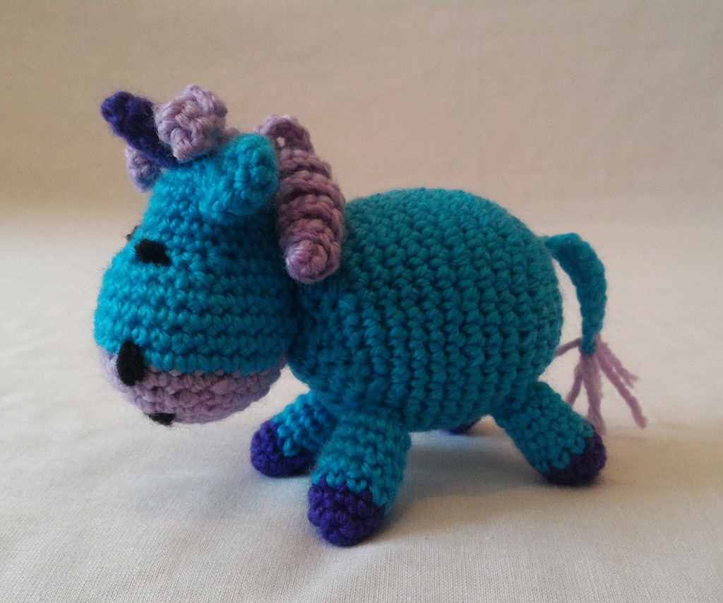 Kuscheltier - Einhorn - Blau / Lila mit Locken und Paillette