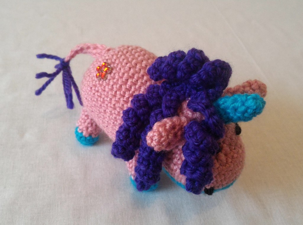Kuscheltier - Krake - Lila mit Schillerlocken und Perlen