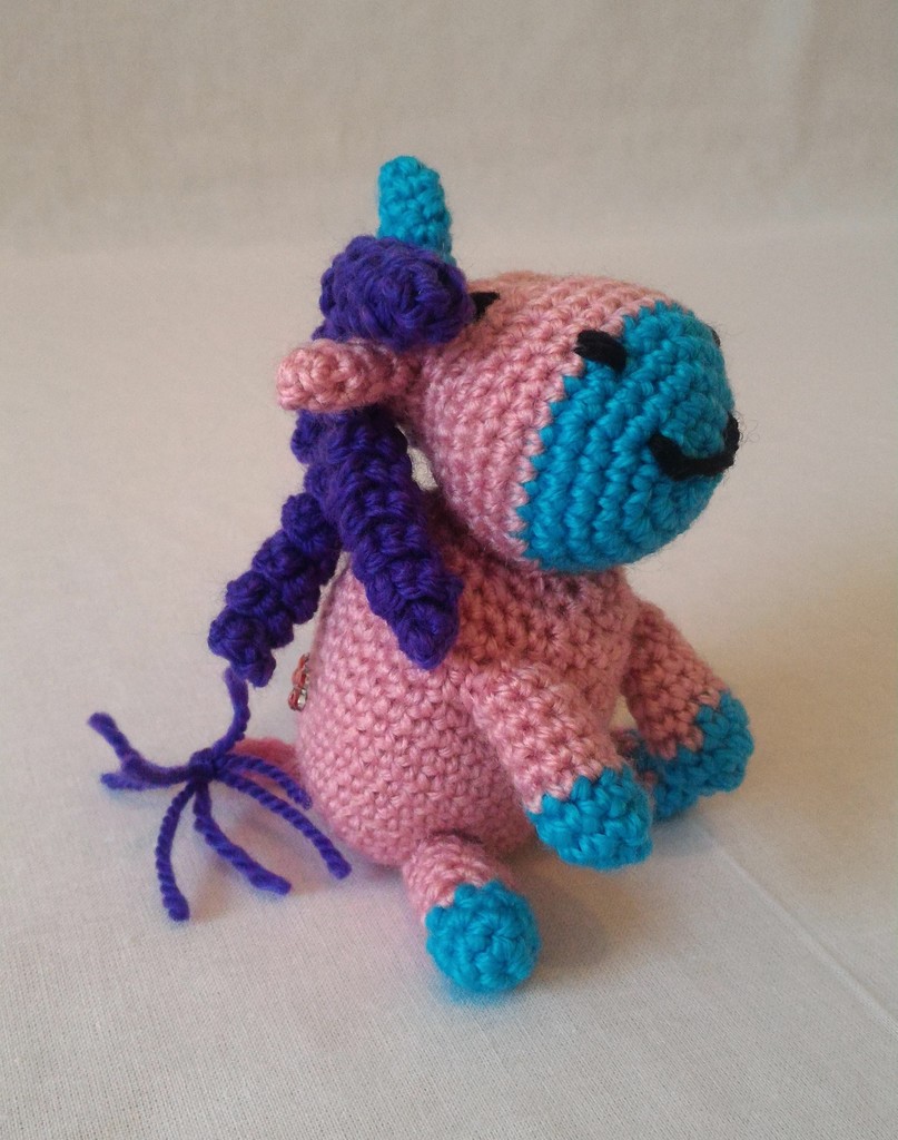 Kuscheltier - Einhorn - Pink / Blau / Lila mit Locken und Paillette