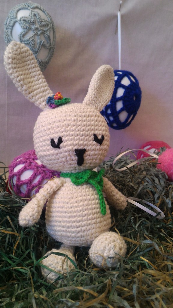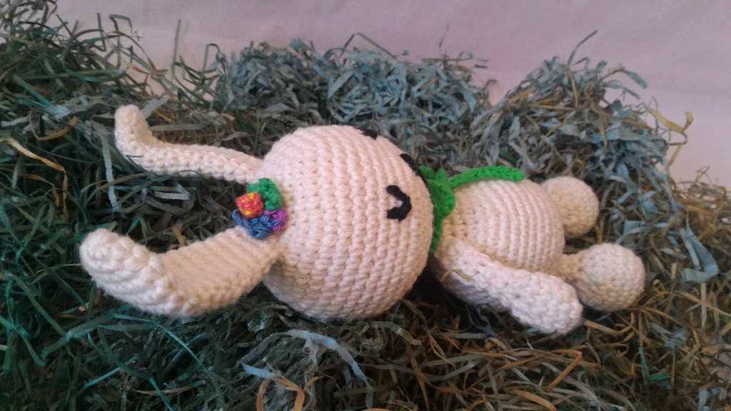 Kuscheltier - Hase - Weiß mit grüner Schleife und Blume
