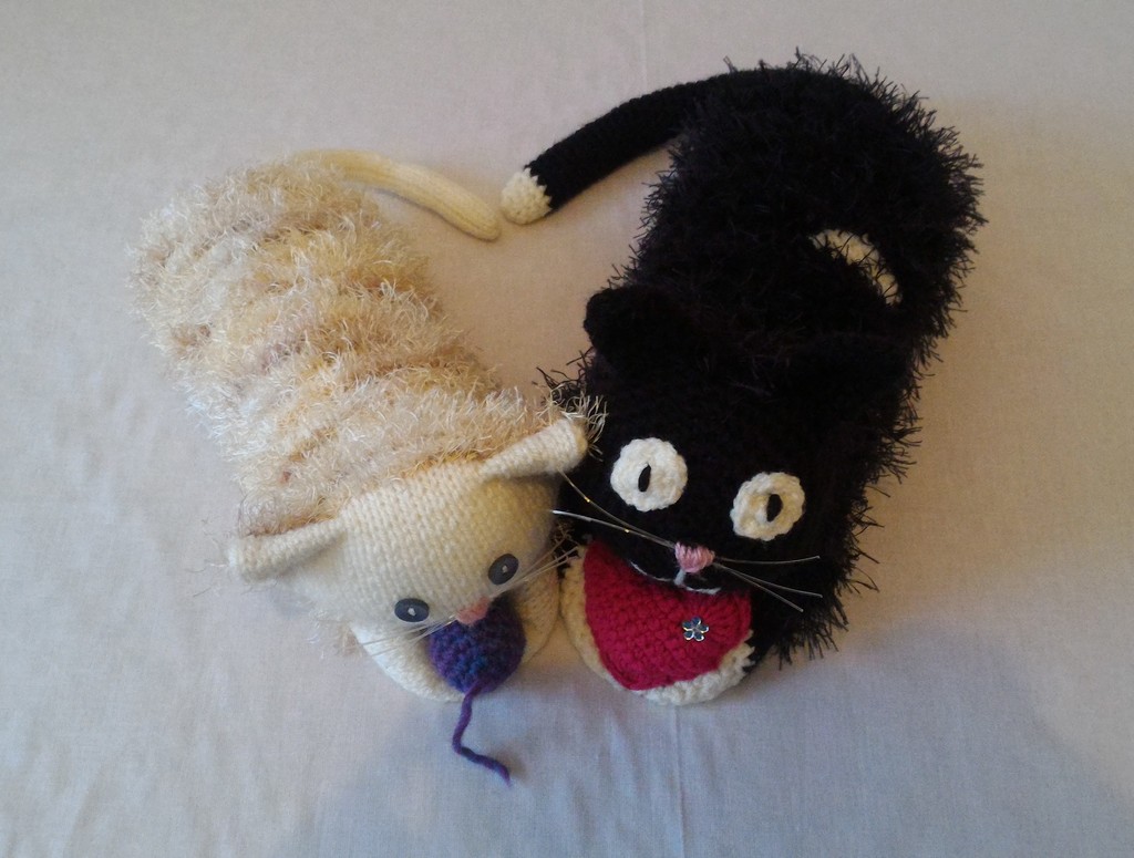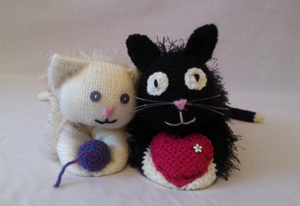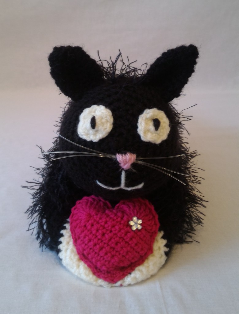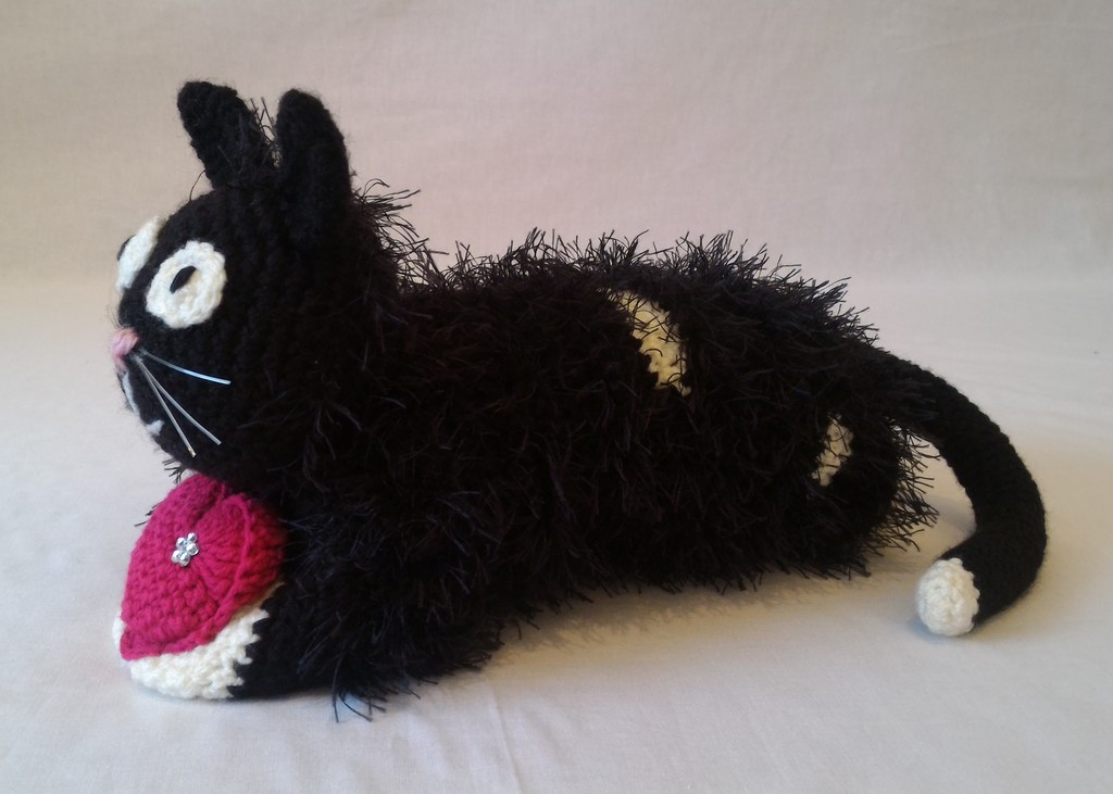 Kuscheltier - Katze - Schwarz / Weiß mit Herz und Perle