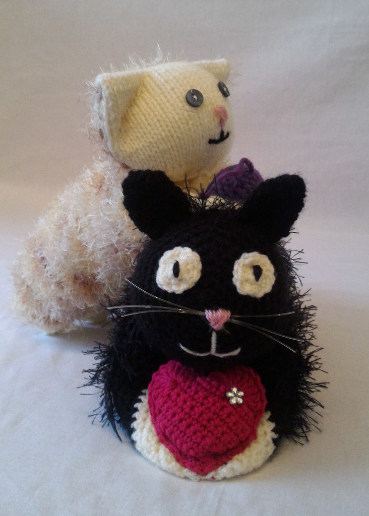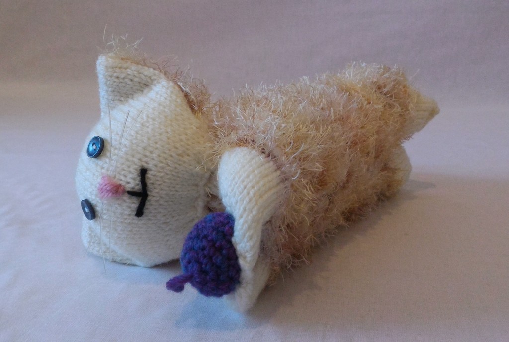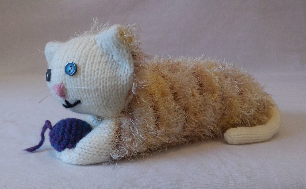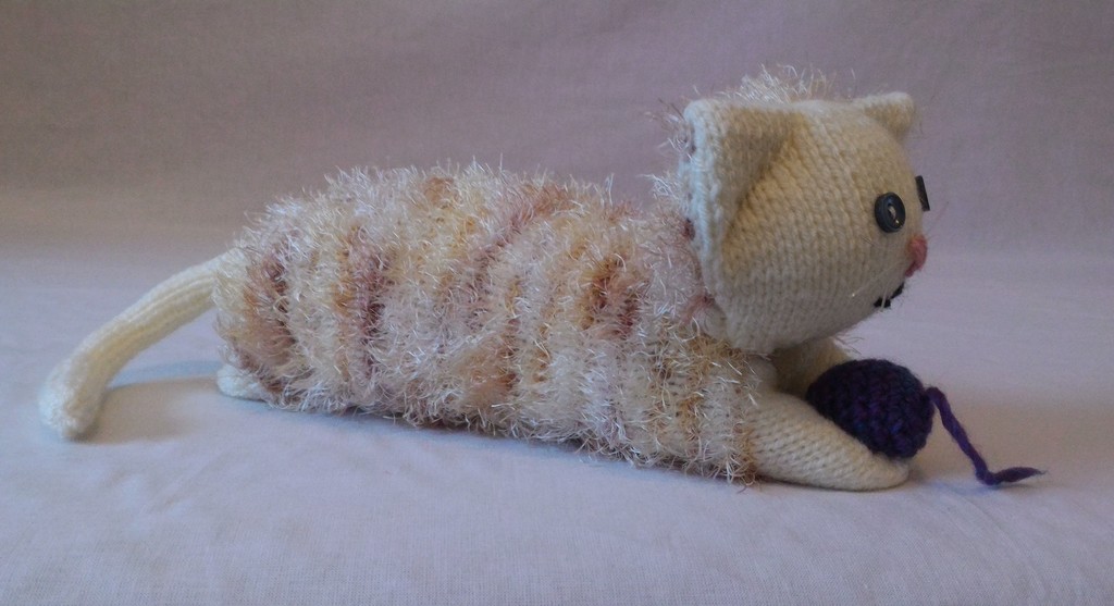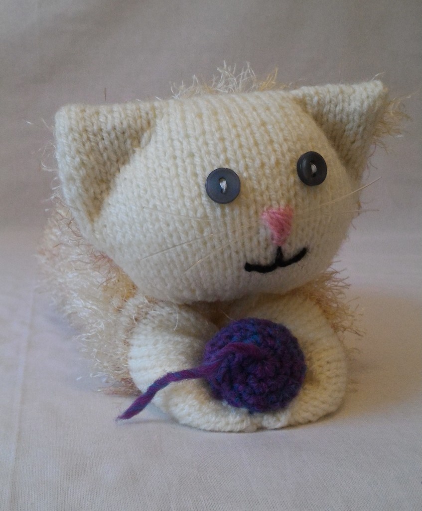 Kuscheltier - Katze - Weiß / Beige mit Lila Ball