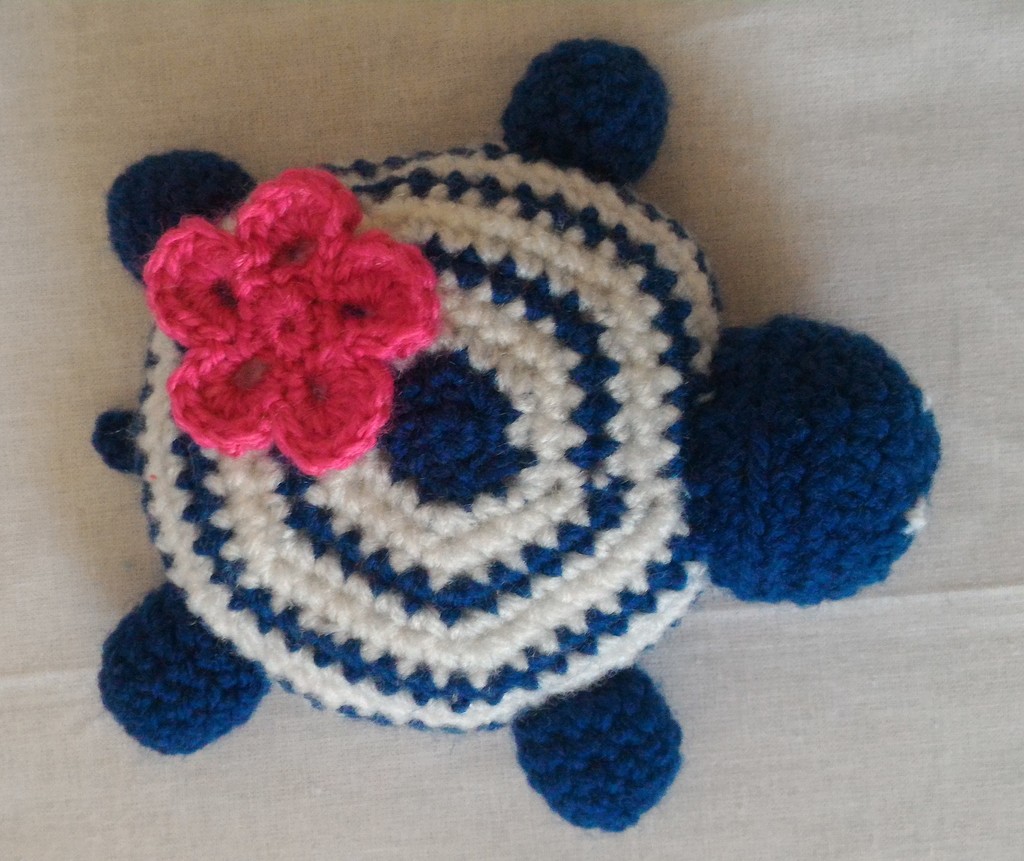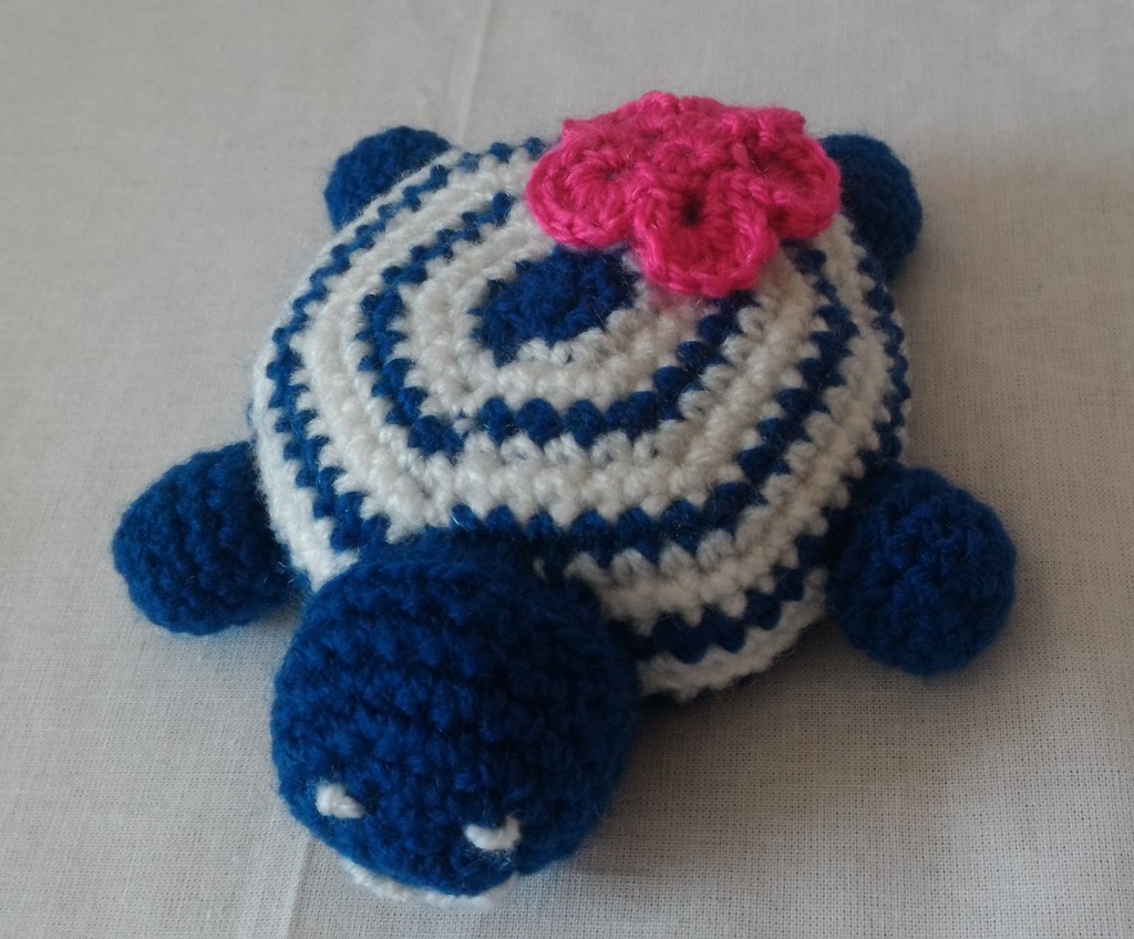 Kuscheltier - Schildkröte - Blau / Weiß mit roter Blume