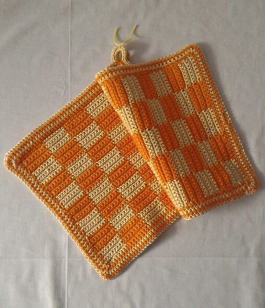 Topflappen - Kariert / Gestreift - Blau / Gelb / Rot